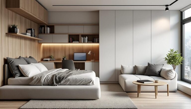Mobilier compact rime souvent avec multifonctionnalité dans les petits espaces. Le canapé convertible est un classique, mais la tendance 2026 penche aussi pour les tables basses gigognes ou les meubles avec rangement intégré. C’est l’idée d’avoir un espace fluide qui se transforme selon les besoins du moment.