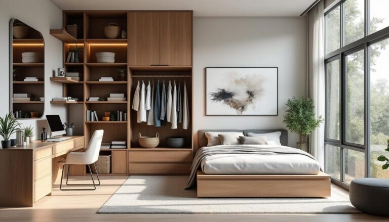 Un salon étouffant peut vite devenir respirable en intégrant du mobilier gain de place et un rangement intelligent. Des solutions existent et gagnent à être connues : canapé avec rangements intégrés, table basse avec tiroirs, poufs-coffres, modules empilables, ou meubles escamotables. Par exemple, les étagères suspendues au-delà de 1m60 de hauteur libèrent le plancher tout en structurant l’espace. Pour un petit salon, privilégie les meubles multifonctionnels qui peuvent se transformer selon l’usage : un bureau pliable, un banc coffre ou une console dépliable. Ces astuces permettent de maximiser espace sans sacrifier l’élégance ni le confort, indispensable pour une décoration petite pièce réussie. Une table basse ronde évite les angles encombrants, tandis qu’un tapis de sol protège et ancre la zone salon sans étouffer la lumière.