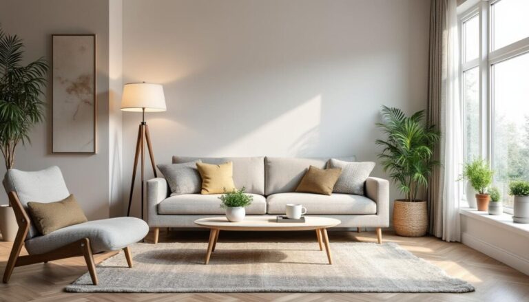 Une fois le style posé, rassemble tes meubles et objets avec une palette limitée. Trois couleurs majeures suffisent pour créer une harmonie agréable. Les matières comme le bois naturel, le métal mat ou le lin ajouté avec parcimonie renforcent aussi la cohérence sans alourdir. Si ton salon déborde, penche-toi vite sur des solutions de rangement déco malines.